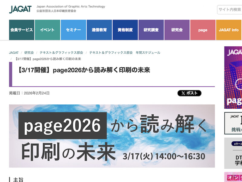 JAGAT、3月17日「page2026から読み解く印刷の未来」開催 イベント