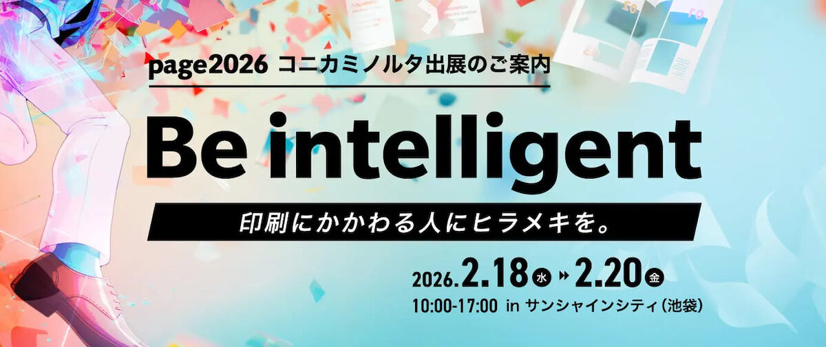 コニカミノルタジャパン(株)は、「Be intelligent〜印刷にかかわる人にヒラメキを。」をテーマにpage2026に出展する。