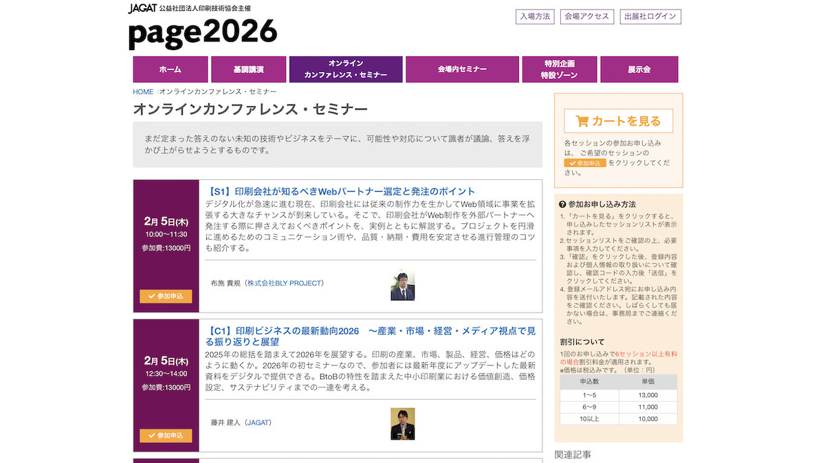 オンラインライブ配信で行われるpage2026のカンファレンス・セミナーでは、6日間で24本と前回からセッション数を倍増して行われる。