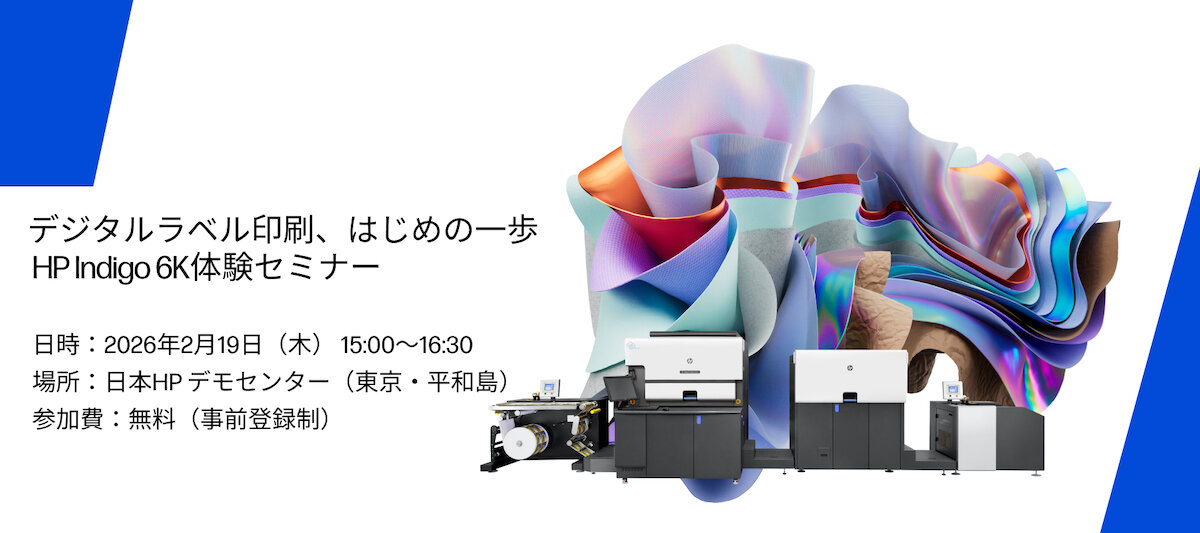 (株)日本HPは2月19日、東京・平和島の日本HPデモセンターにおいて「デジタルラベル印刷、はじめの一歩 HP Indigo 6K 体験セミナー」を開催する。