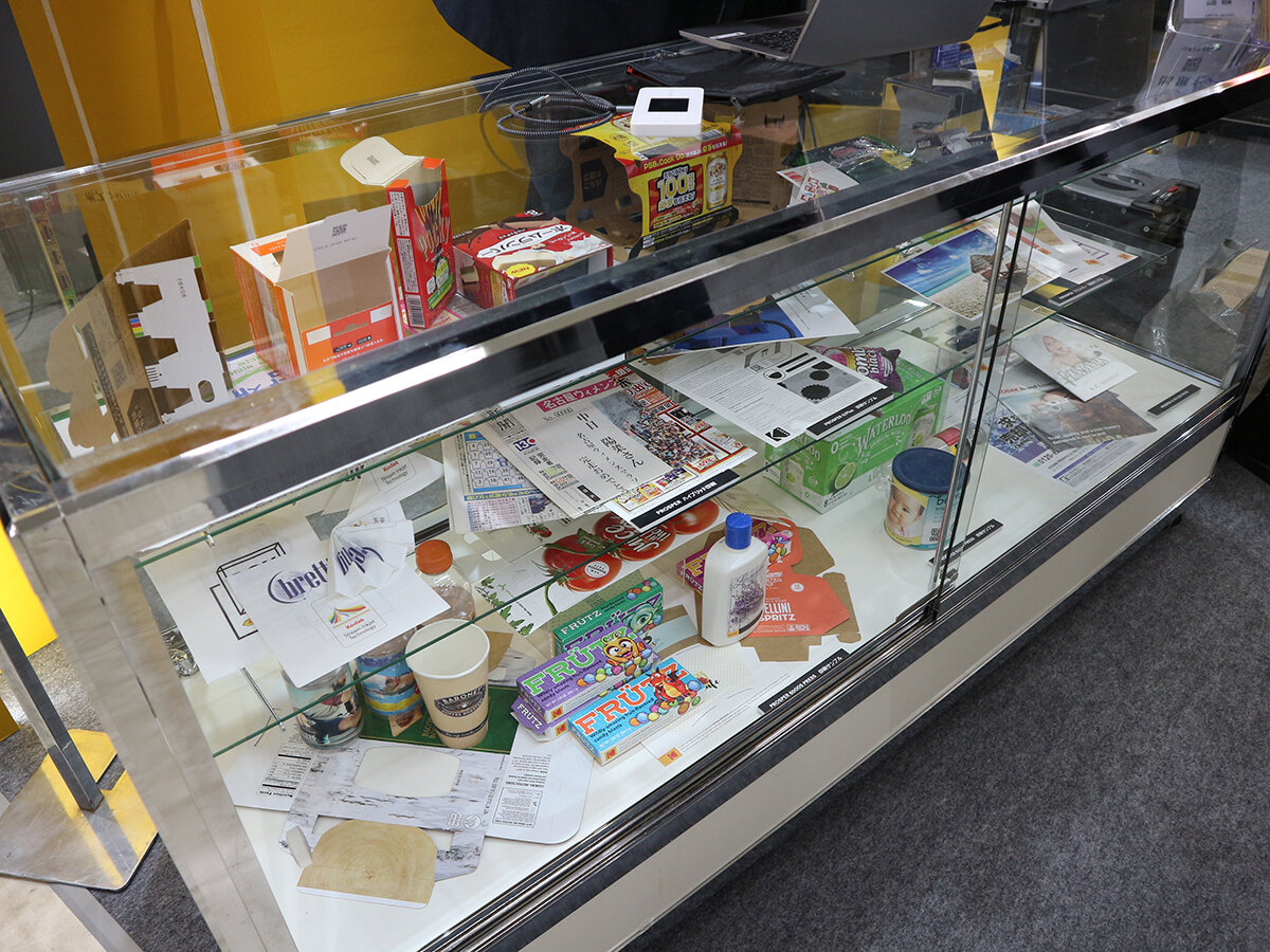 コダックジャパンのブース(文化会館3FホールC)では、PROSPERインプリンティングソリューションの多彩な印刷サンプルを展示。その幅広い用途とその品質を紹介している。