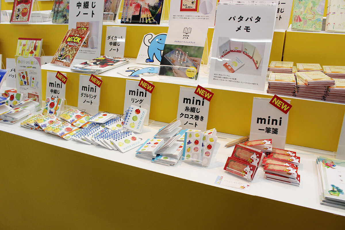 今回の見どころとして紹介したのは、カバンなどに装着して使うことを想定した従来製品の「miniシリーズ」のラインアップである。書くハードルを下げる可愛い「ミニ一筆箋」ほか、ミニノートでは「mini糸綴じクロス巻きノート」、「miniリング」、「miniダブルリングノート」、「mini中綴じノート」などを紹介。見た目の可愛らしさから女性を中心に注目を集めた。