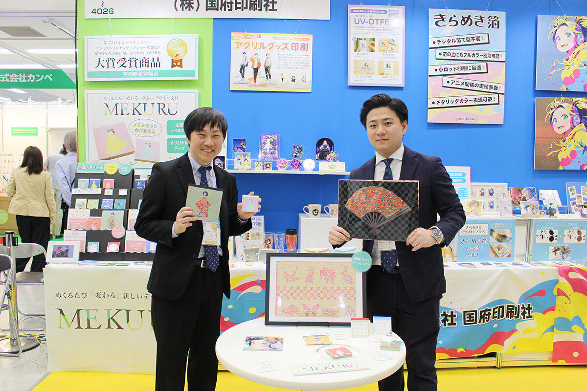 (株)国府印刷社(福井県越前市、有定耕平社長)は、4月8日から10日まで東京・池袋のサンシャインシティで開催されたプレミアム・インセンティブショー春2026に出展。推し活グッズと文具の2軸体制のブースを構築し、来場者の注目を集めた。