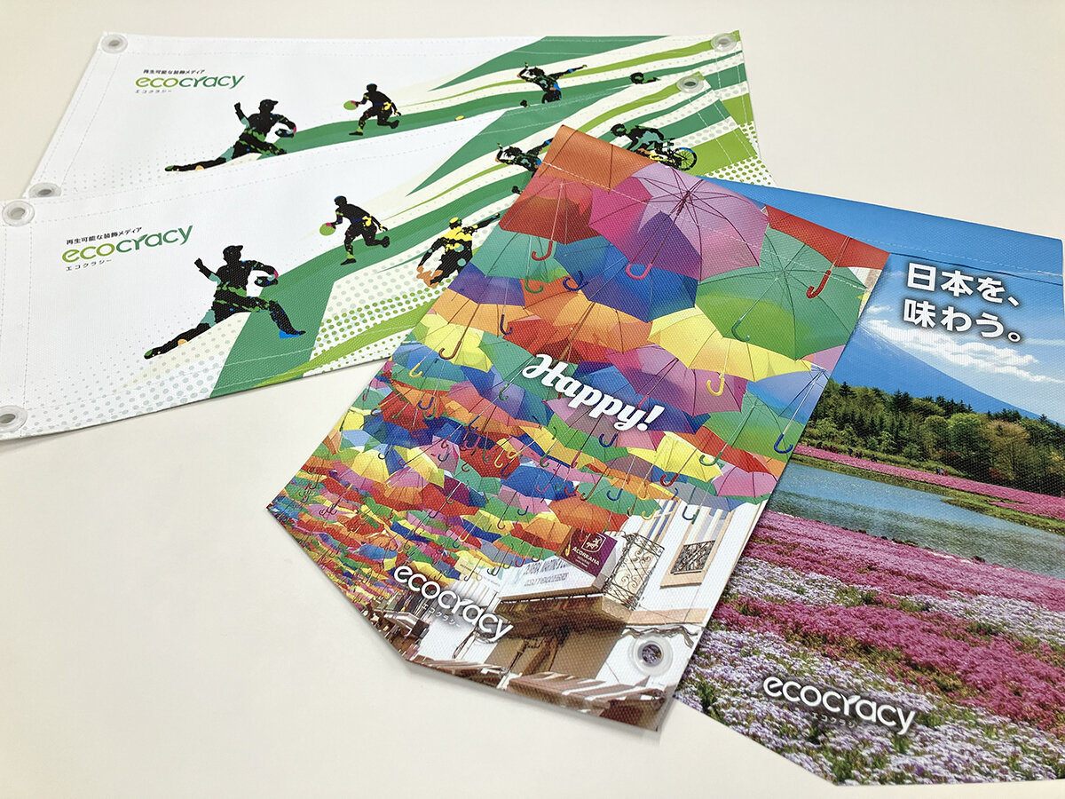 同製品は本格提供開始に先立ち、大阪・関西万博の会場案内サインに採用され、万博においては、大阪府および府内の各市町村に万博の機運醸成のためPR用横断幕を寄贈し、万博終了後は寄贈した横断幕を回収。ノベルティへ再資源化する資源循環の取り組みも実施している。