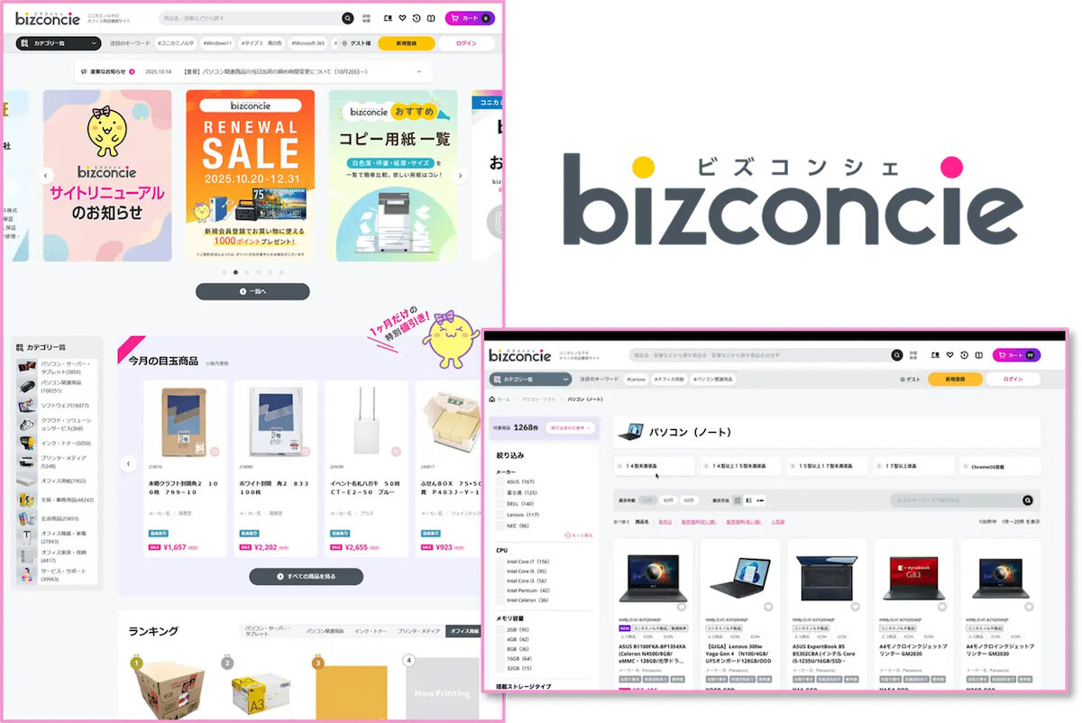 コニカミノルタジャパン(株)(本社/東京都港区、一條啓介社長)は10月20日、オフィス用品からIT・SaaSサービスまで幅広く提供する法人向けECサイト「bizconcie(ビズコンシェ)」を全面リニューアルした。