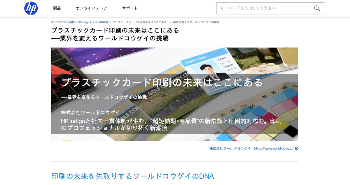 (株)日本HPは、新たなユーザー事例として「プラスチックカード印刷の新基準─HP Indigoで挑むワールドコウゲイの革新ストーリー」をホームページで公開している。