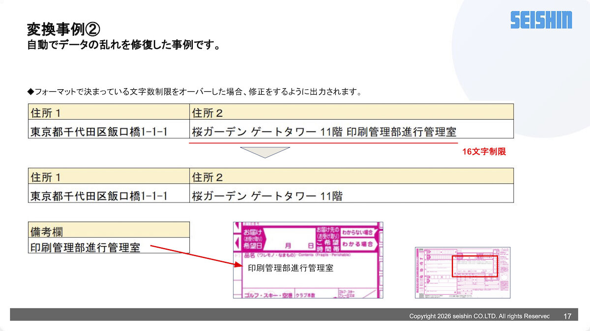 誠伸商事(株)(本社/東京都大田区、福田和也社長)は、多様な形式の配送先リストを主要運送会社の指定フォーマットへ自動で変換・補正するAIソフトウェア「Logi-Stream(ロジ・ストリーム)」を4月20日より提供を開始した。